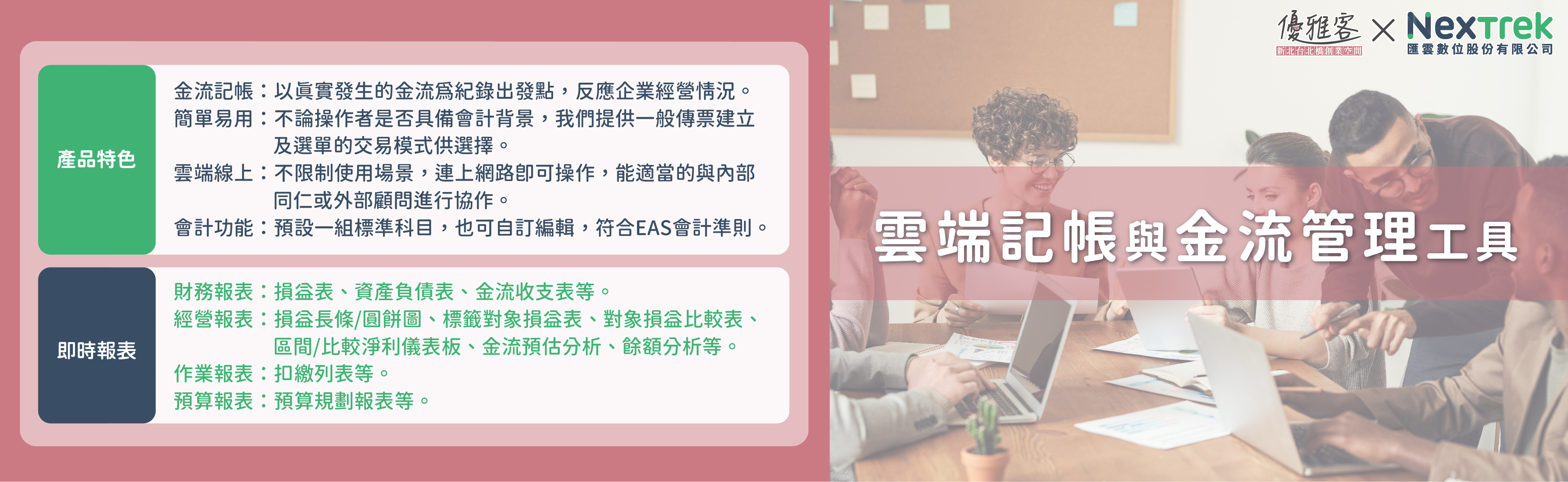損益表、資產負債表、金流收支表,你需要的管理資訊都在這!只需要如實輸入金流,報表皆會自動編制,而且隨時都能匯出、列印。
