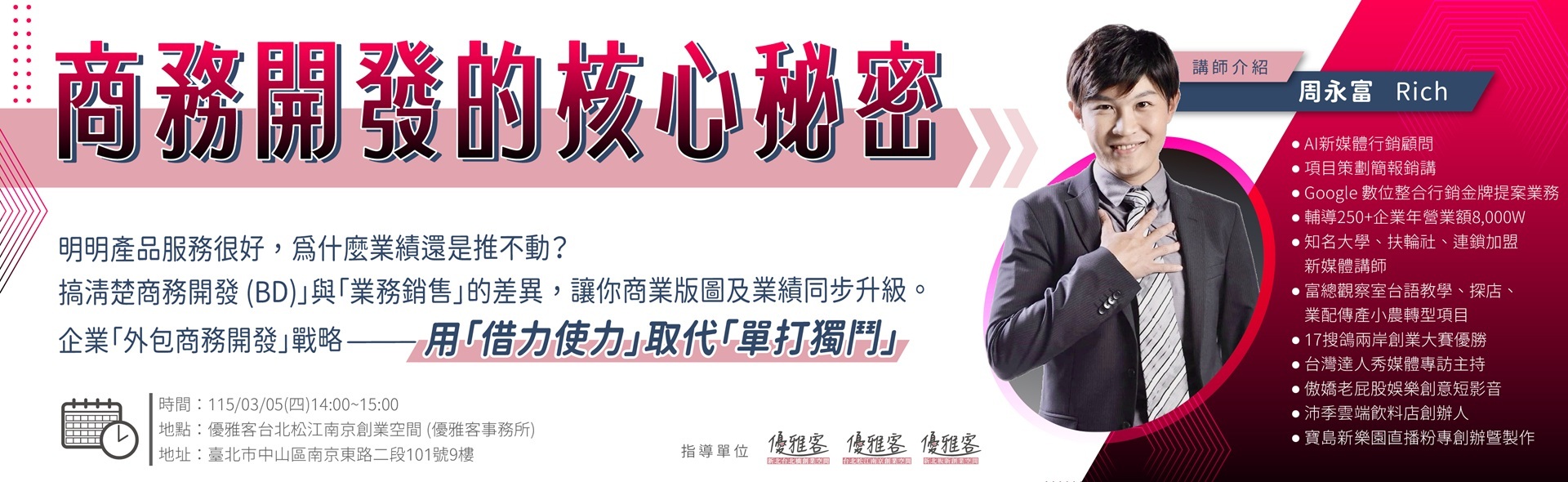 臺北市中山區南京東路二段101號9樓 (優雅客事務所)