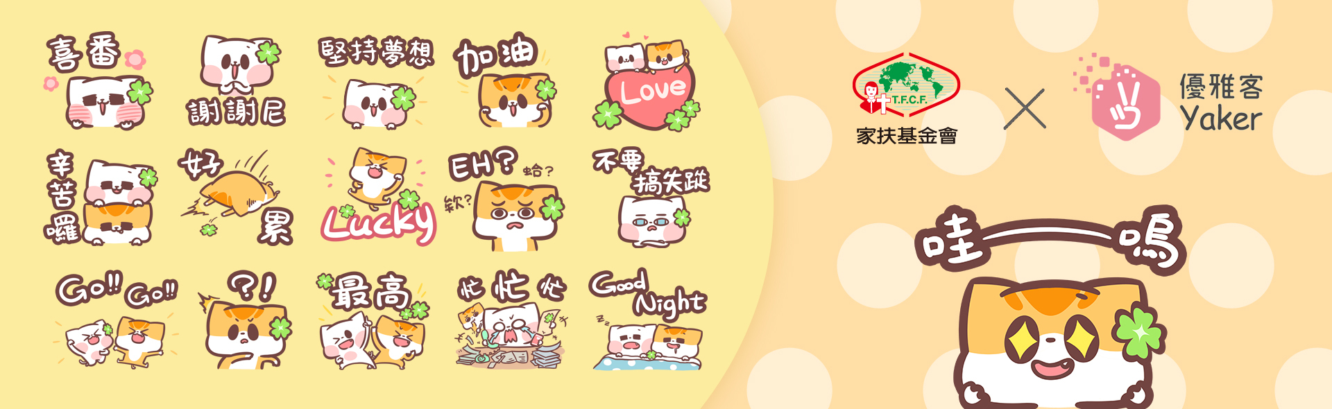 推出超可愛又實用的幸運草LINE貼圖,購買貼圖所得扣除上架成本後,將全數捐贈家扶基金會,用於《無窮世代計畫》幫助弱勢孩子吃飽穿暖、穩定求學、培養脫貧能力!